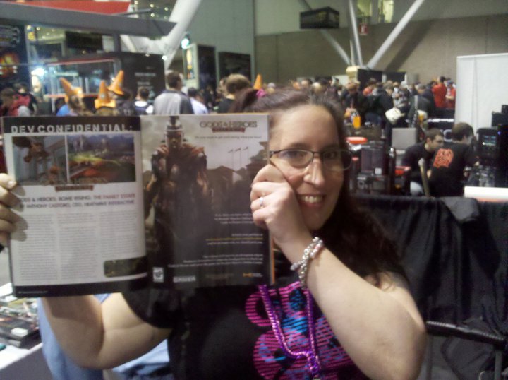 On Thursday, I managed to schlep thousands of Gods & Heroes: Rome Rising beta keys from the hotel to the convention. They had a free shuttle, but after brekkie, we ended up waiting 30 minutes or so for it. I didn’t make it to the convention center as early as I wanted. I did run into my some of my BioWare pals who pointed me to the Expo Hall. I was lucky, as I was pretty close to the entrance where the Geek Chic booth was located. Once I saw them, I knew I was close to where I needed to be.