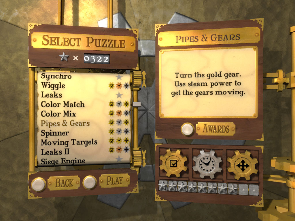 His passion for creating accessible good games is quite apparent when you meet him. I’ve been able to watch Cogs jump from being PC only, to being developed across many platforms. I have a pretty short puzzle fuse, as it were. But I enjoy that Cogs can be played a variety of ways. I’m much less likely to succeed in a time challenge than one based on moves. Some puzzles are very easy for me (gears & chimes) and some are downright impossible (anything with steam pipes). Still, I fail the puzzle, but I still feel that I’ve succeeded. This is a smart and beautiful game. Please buy it on as many platforms as you can.